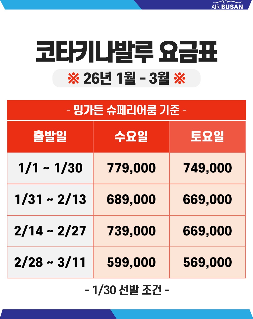 ✅ 1월 30일 까지 선발권 조건입니다/ 발권후 취소시 항공 환불 수수료 1인 15만원 발생됩니다.