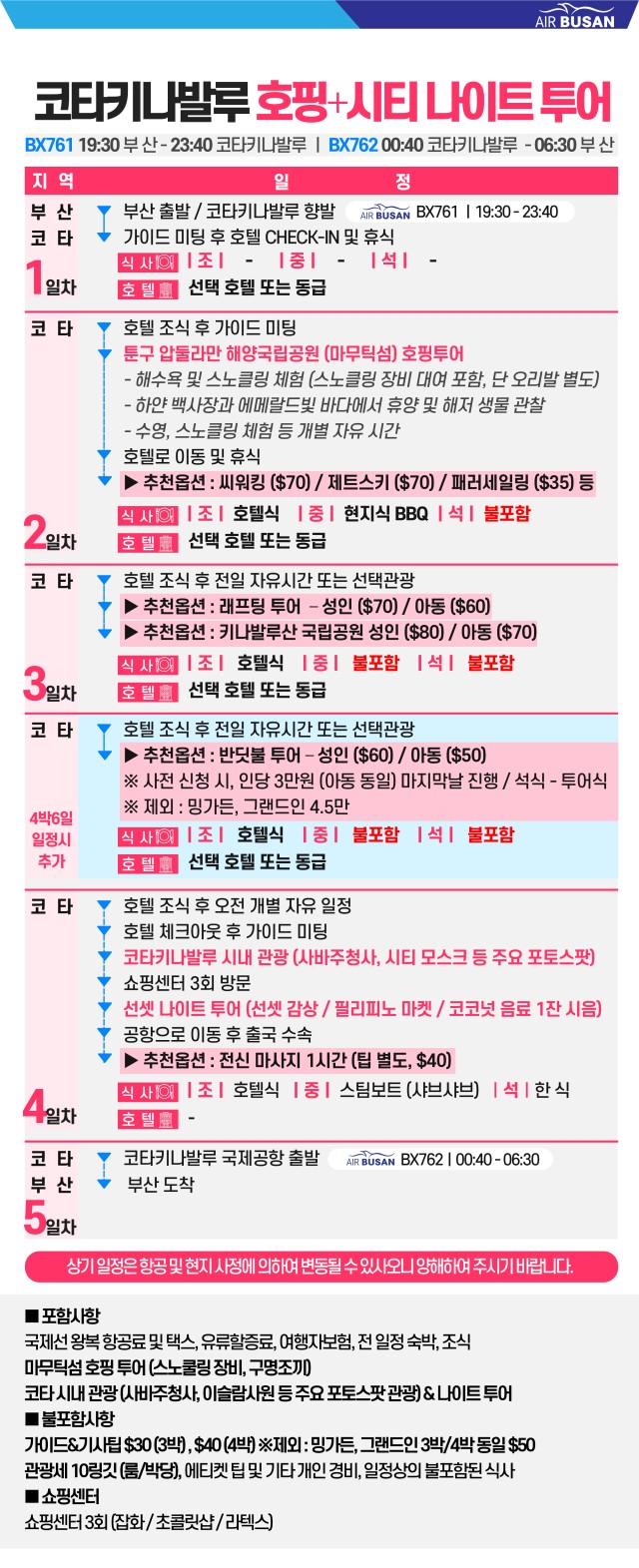 ✅ 예약 시점에 따라, 항공료 부분 인상될 수 있으며, 선발권 진행될 수 있습니다.