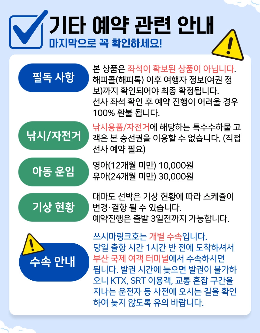 ✅ 포 함 사 항 | 부산↔대마도 쓰시마링크호 왕복 승선권 |