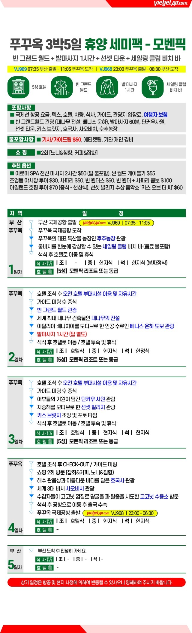 휴양 세미팩 or 노팁노옵션 푸꾸옥 3박5일 패키지