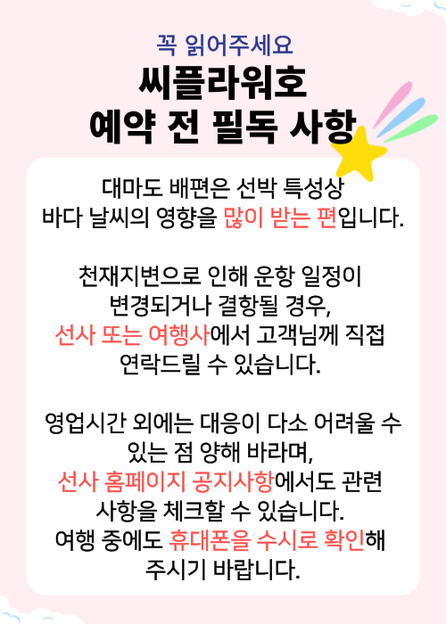 ✅ 본 상품은 선사에 좌석 확인 후 확정 여부를 안내 드립니다.
