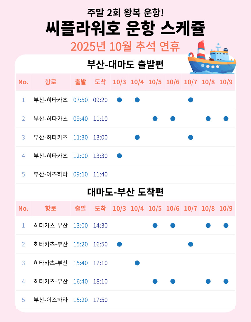 매일 운항하는 부산-대마도 배편 씨플라워호 승선권 예약