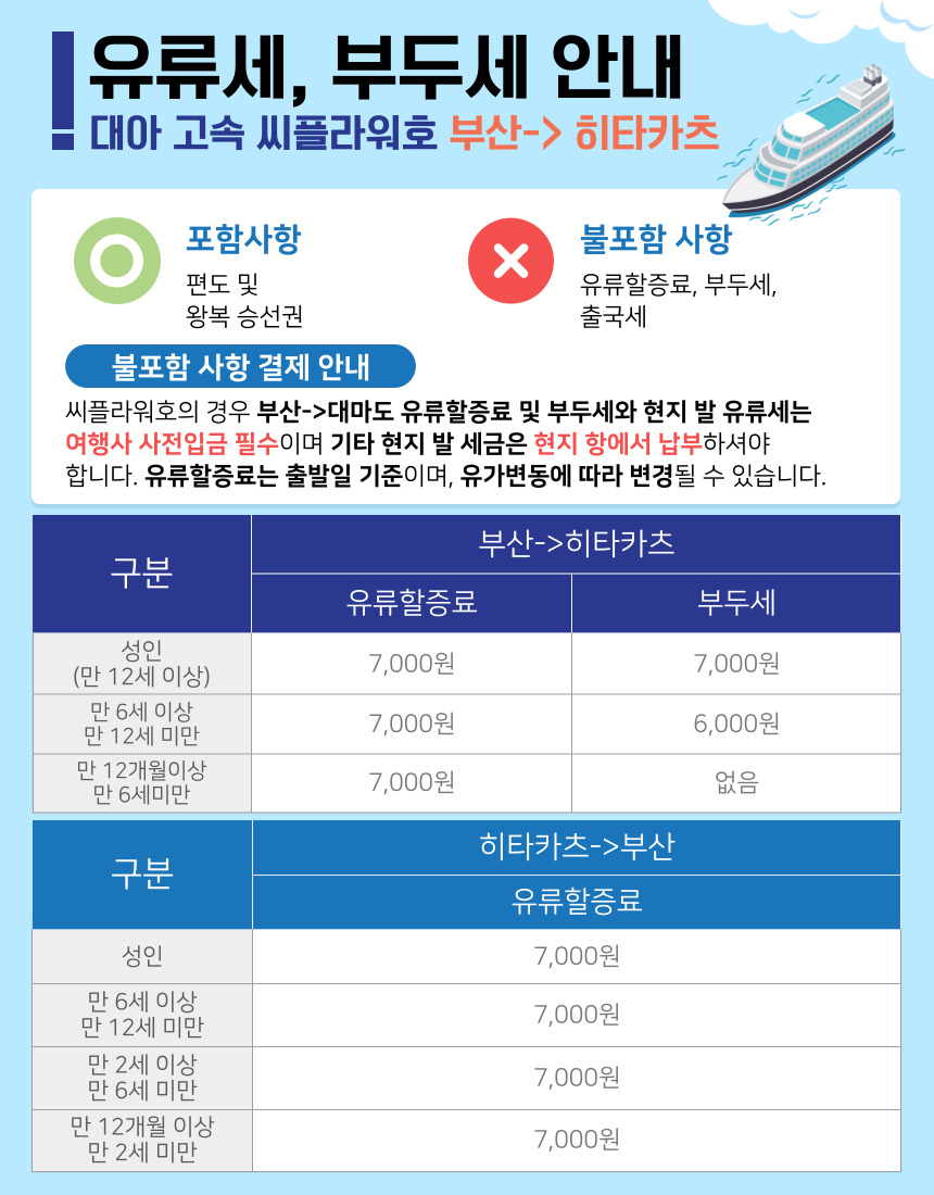 ✅ 포 함 | 부산↔대마도 씨플라워호 왕복 승선권 |