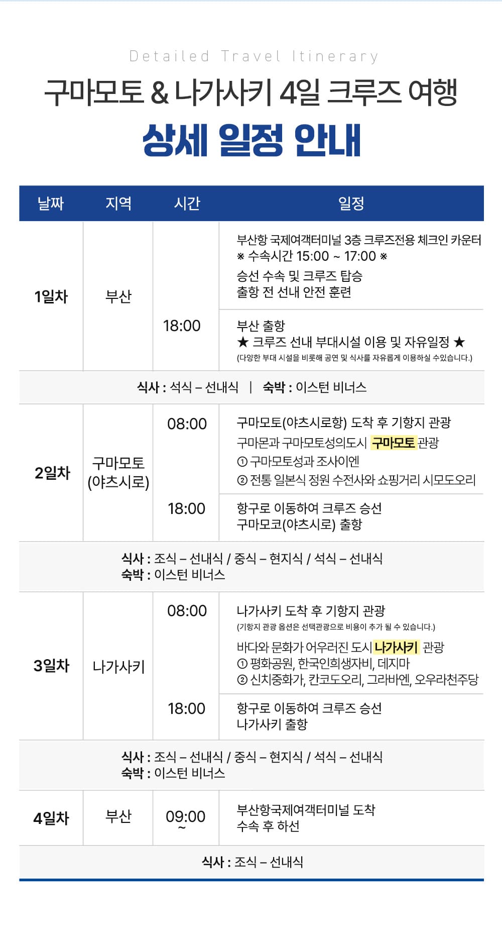 출발시간 부산 출발 18:00 - 날짜별 기항지 도착 익일 08:00(익일)