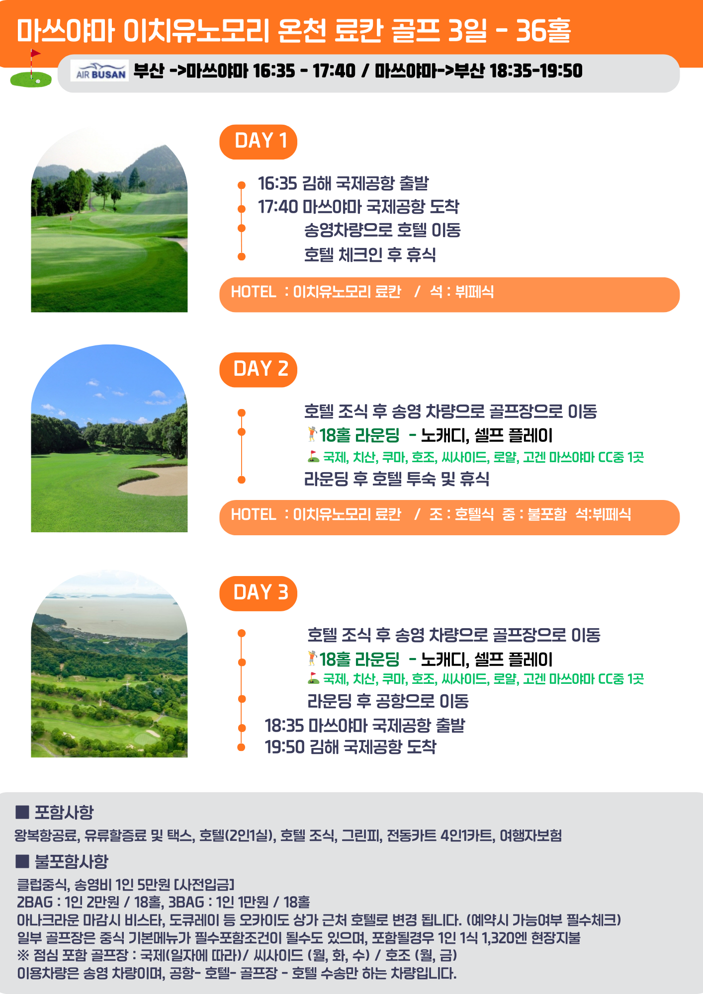 마츠야마 온천료칸 골프여행 2박 3일 - 36홀 ⛳
