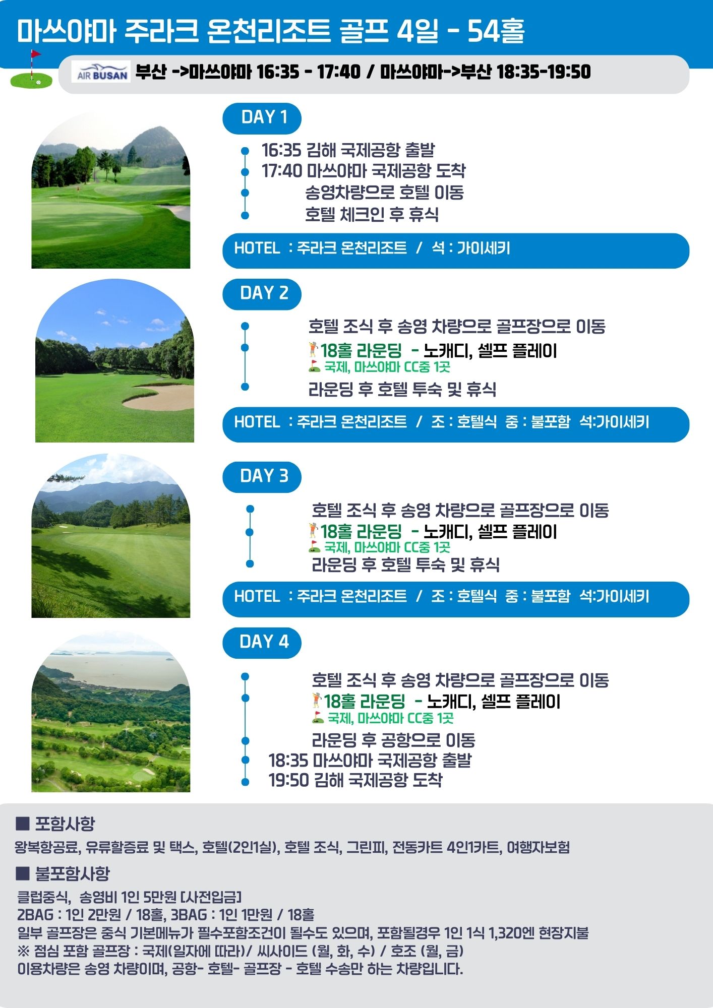 마츠야마 온천료칸 골프여행 3박 4일 - 54홀 ⛳