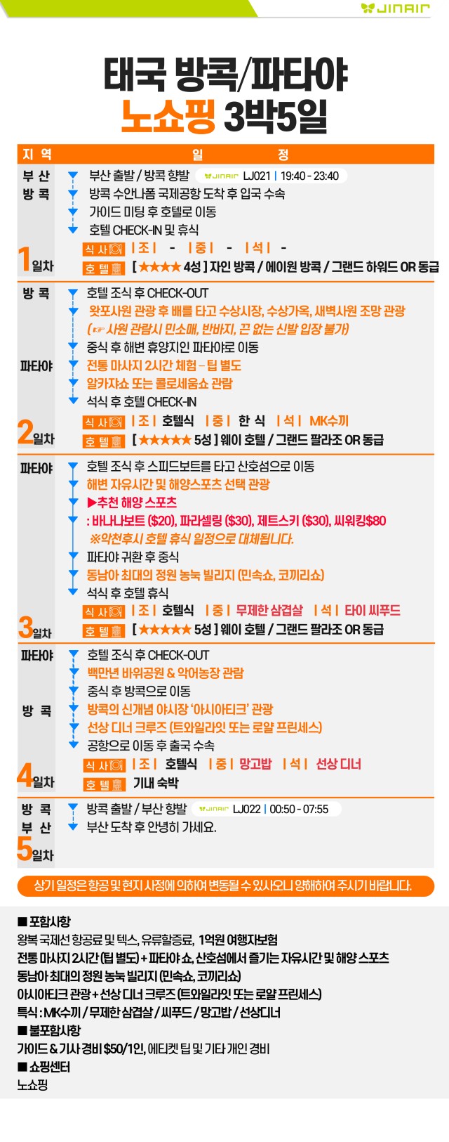 [부산출발- 진에어] 노쇼핑_ 방콕 파타야 5일 #파타야5성호텔 #마사지2시간 #선상디너크루즈
