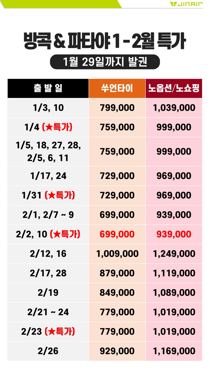 ✅ 1월 29일 까지 선발권 조건입니다/ 발권후 취소시 항공 환불 수수료 1인 15만원 발생됩니다.