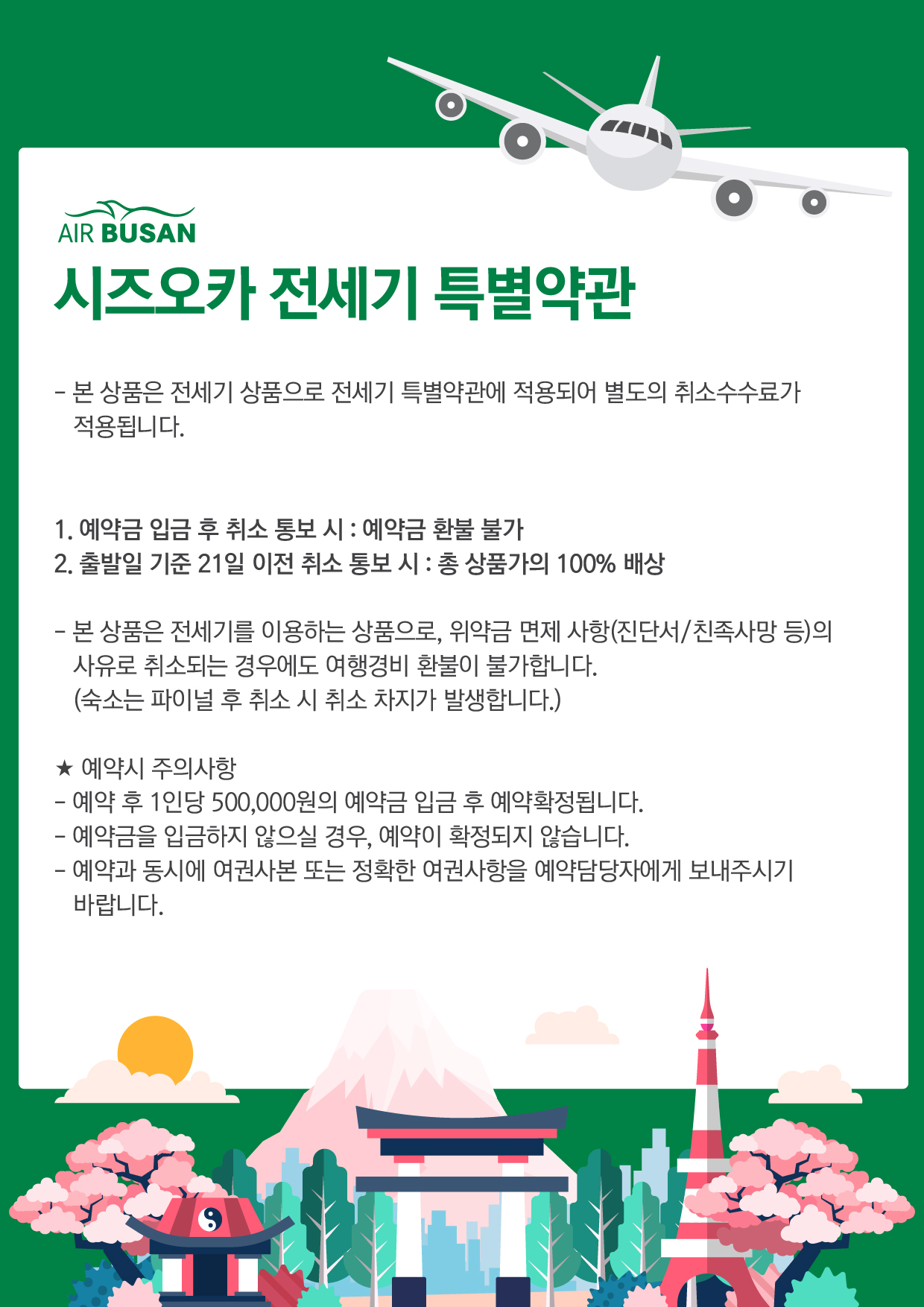 ✅ 전세기 상품은 예약 확정후 취소시 예약금 환불 불가, 항공권 발권 후 취소시 환불 불가 입니다.