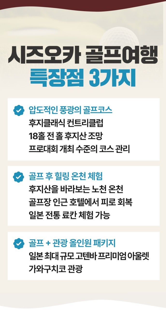 ③ 골프 / 관광 / 쇼핑 / 온천 모든것이 가능한 올인원 골프 패키지