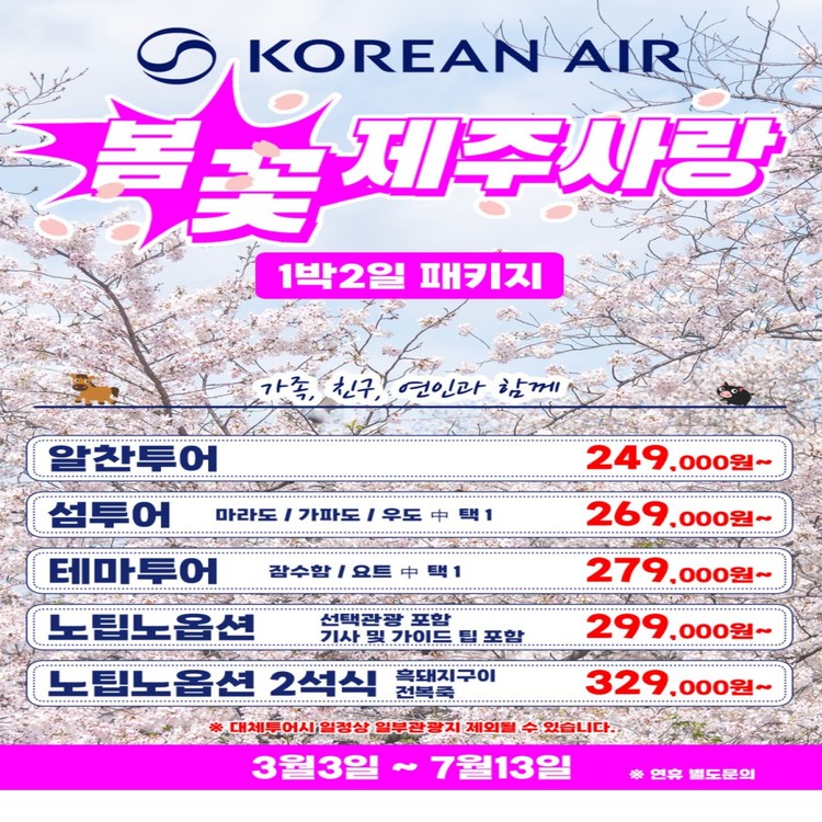 [전국출발] 봄꽃 제주도 패키지 1박 2일 🏞️