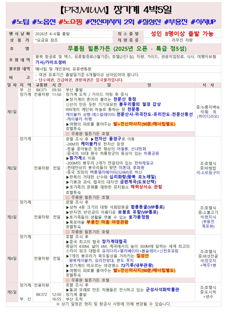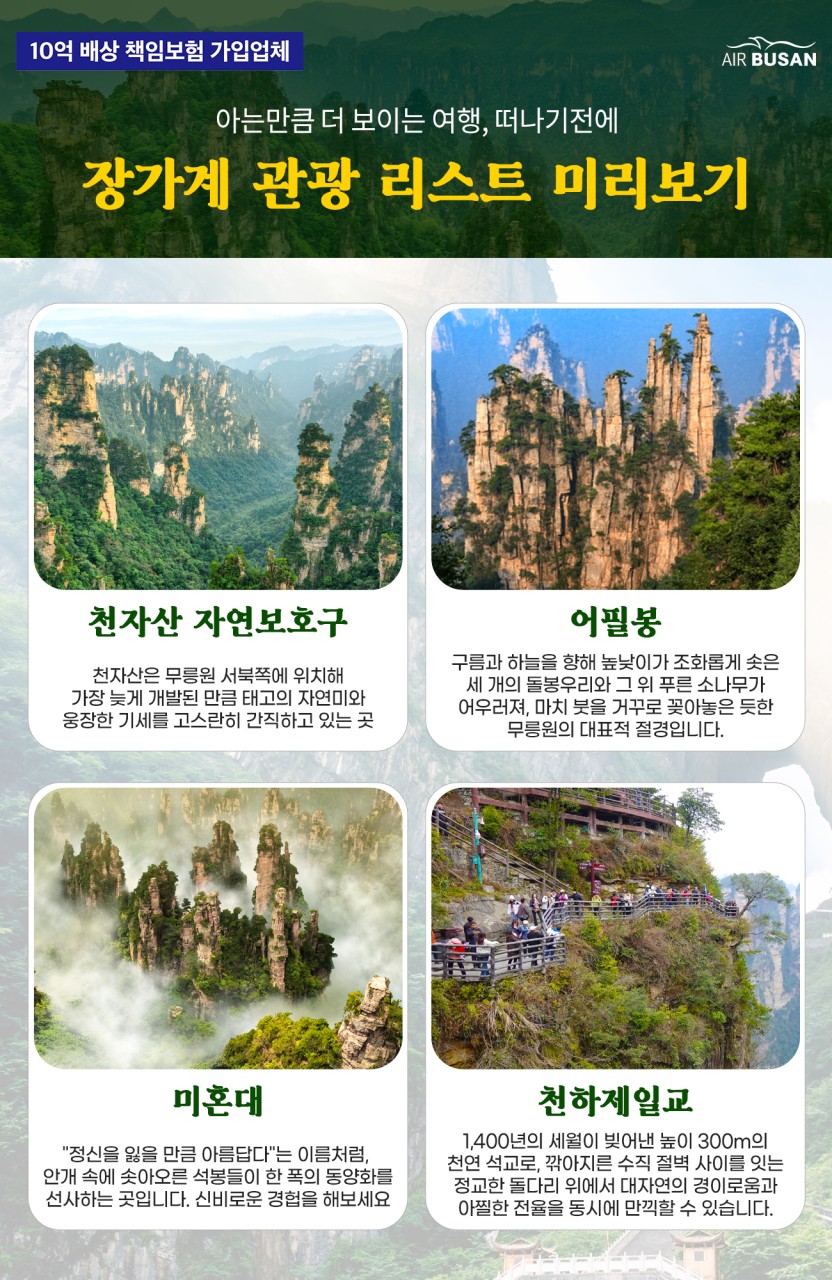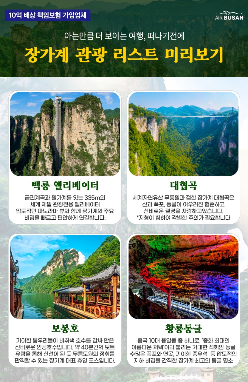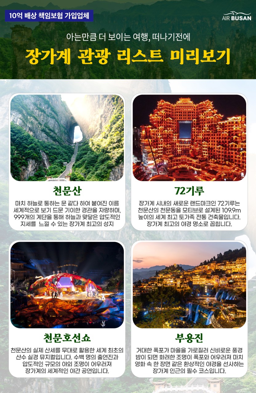 부산출발 -에어부산 장가계 칠성산 4일, 5일 #노팁 노옵션 #노쇼핑