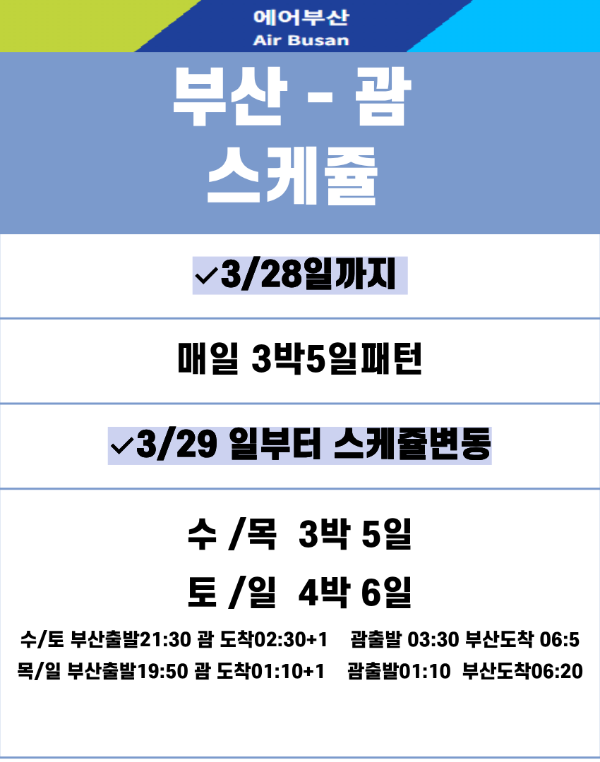 ⏱️ 도착시간 괌 출발 03:30 - 부산 07:00