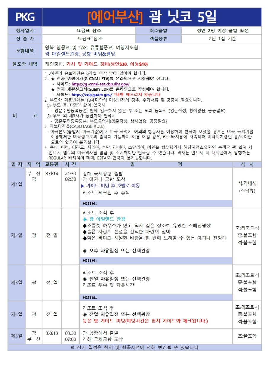 [부산출발 - 에어부산] 괌닛코호텔 5일 #자유일정 #레이트체크아웃 #노쇼핑판매대기