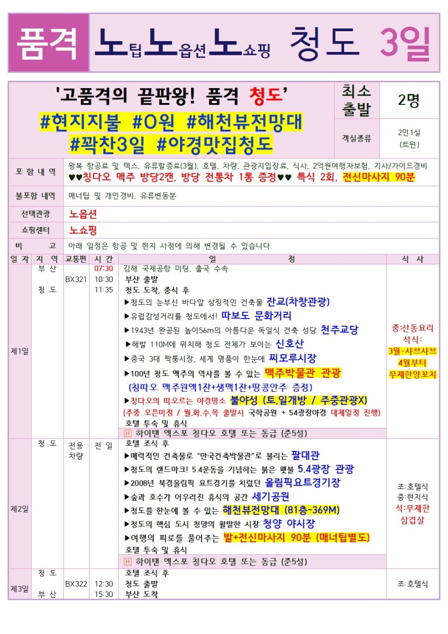 부산출발 -에어부산 청도 3일 #2명출발#노팁노옵션노쇼핑