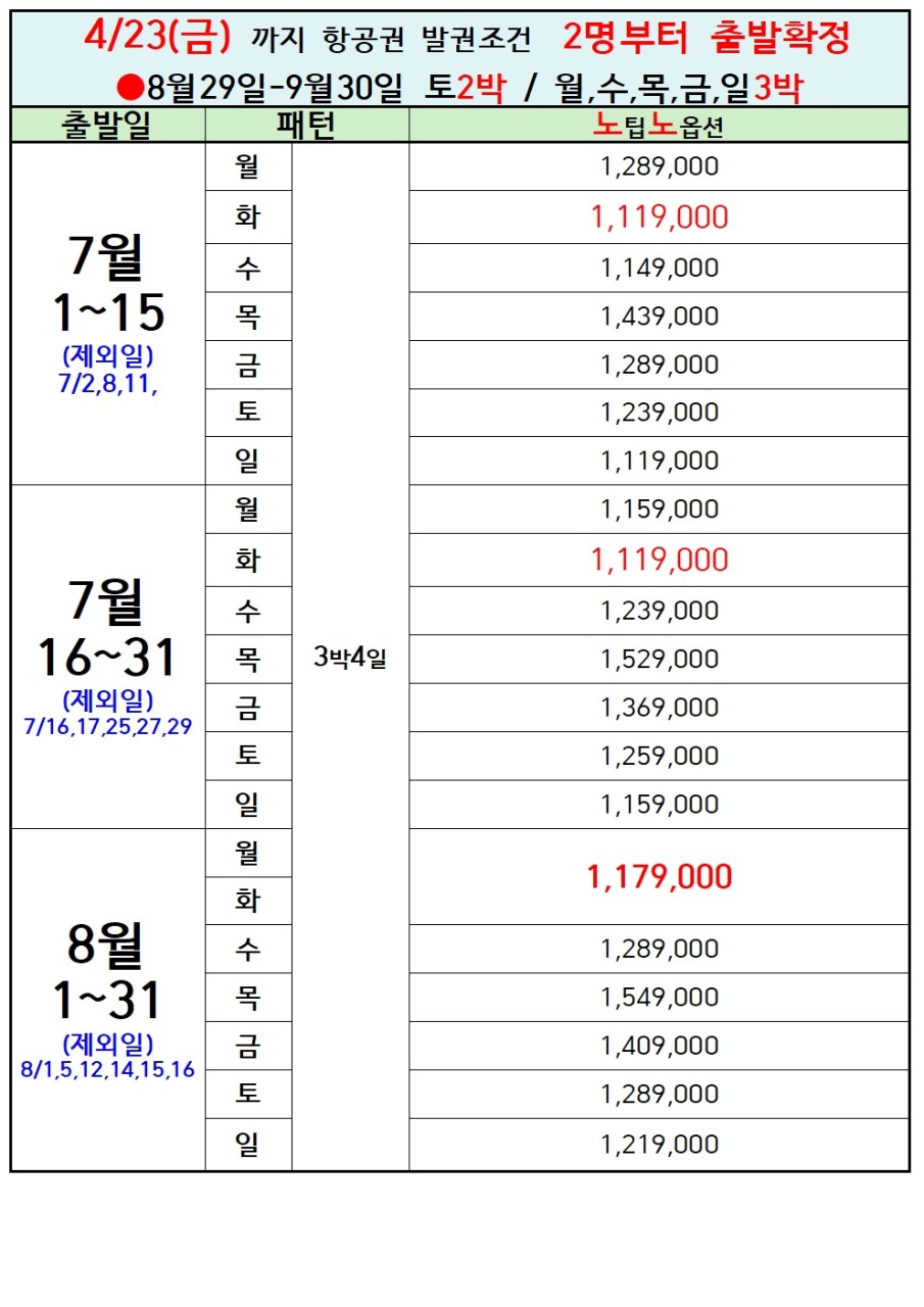 ✅ 4월 23일 까지 선발권 조건입니다/ 발권후 취소시 항공 환불 수수료 1인 15만원 발생됩니다.