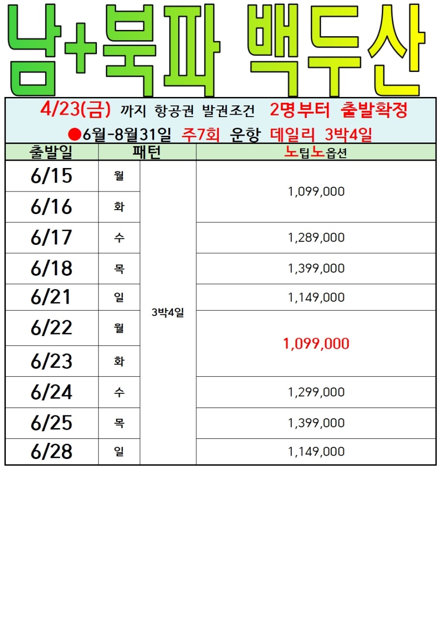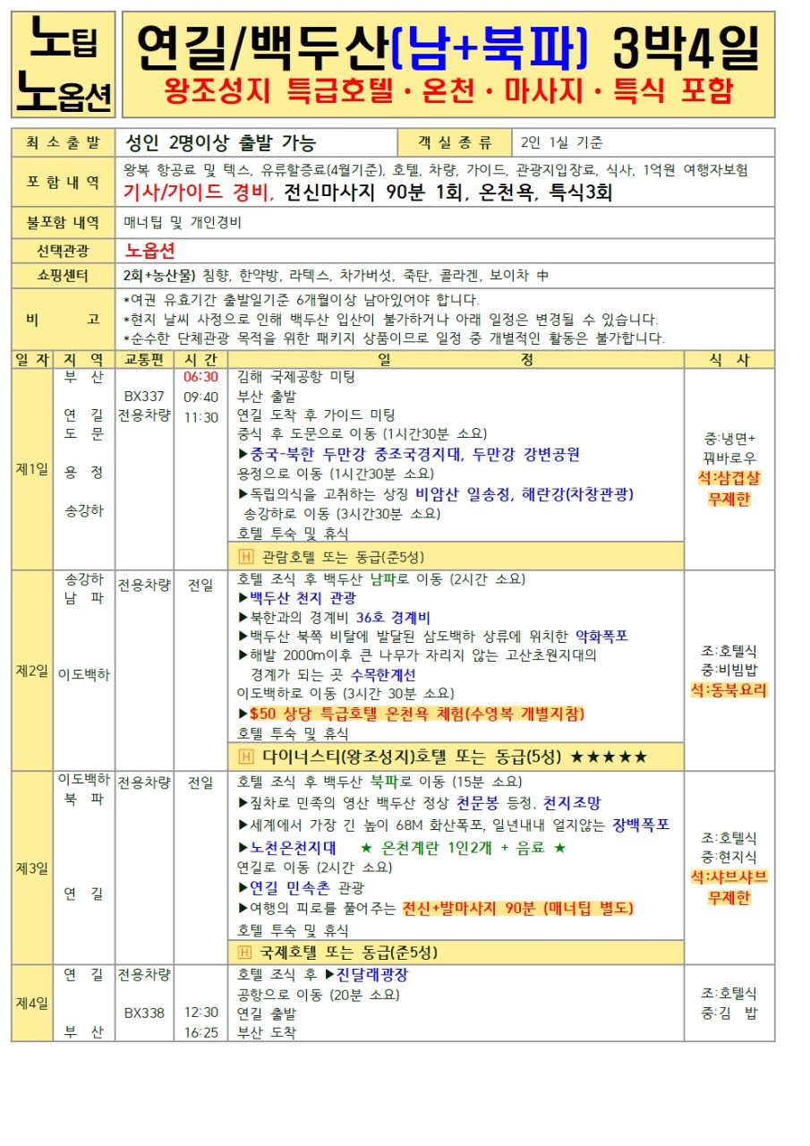 #부산출발 #연길 #백두산 #남파 #북파 #노팁노옵션 #에어부산