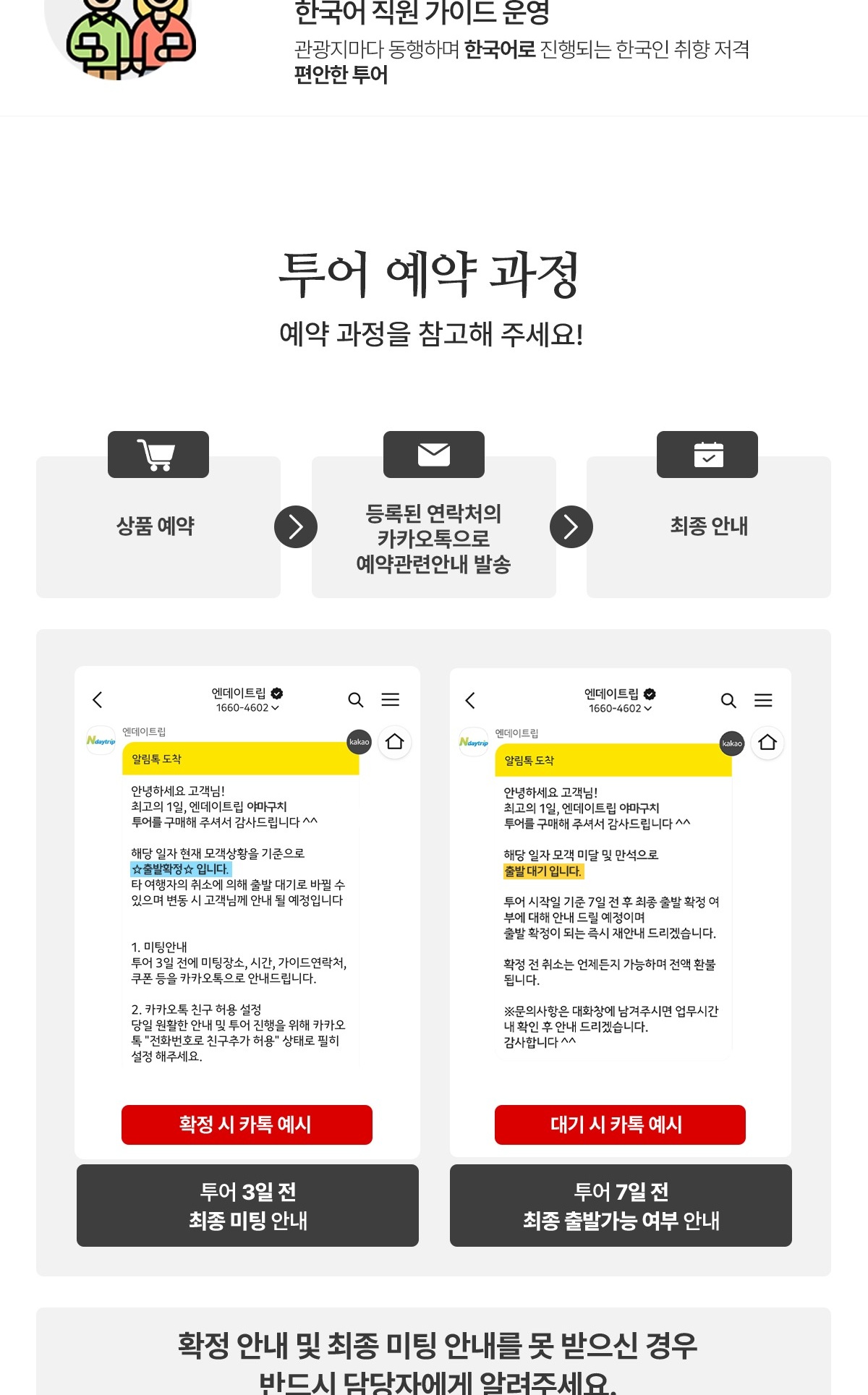 예약을 원하시면 출발하시려는 정확한 날짜와 함께 결제 해 주시면 가능 여부 확인 후 진행됩니다. 예약 진행이 어려울 경우 100% 환불 가능합니다. (매주 금,토 출발, 최소출발인원 6명)