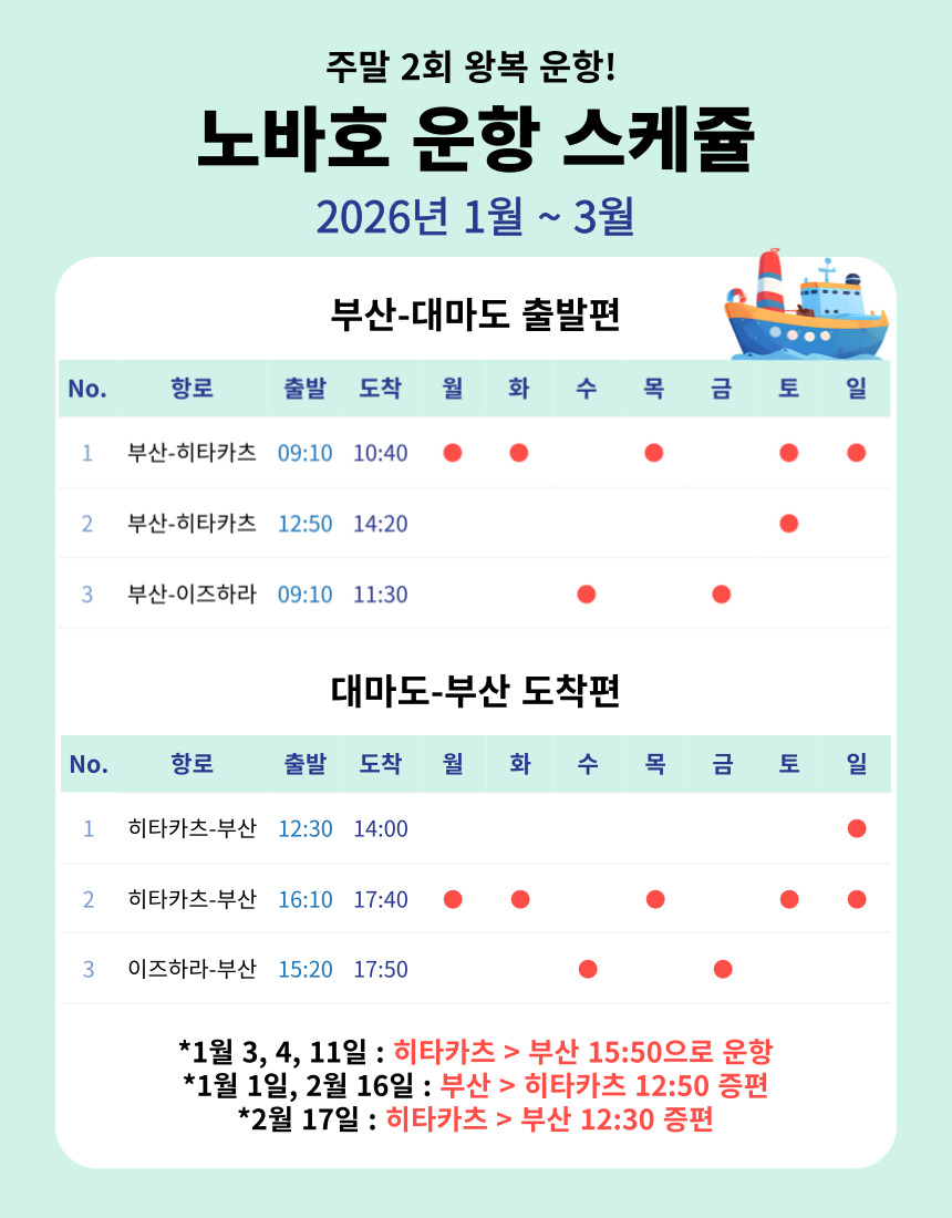 도착시간 히타카츠 출발 16:10 - 부산 도착 17:40